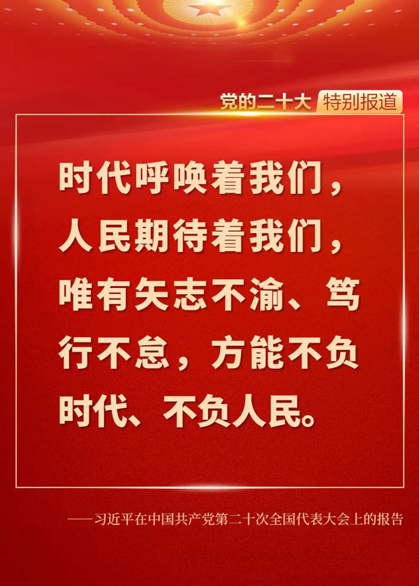 在全黨全國各族人民邁上全面建設(shè)社會主義現(xiàn)代化國家新征程、向第二個百年奮斗目標(biāo)進(jìn)軍的關(guān)鍵時刻,黨的二十大科學(xué)謀劃未來5年乃至更長時期黨和國家事業(yè)發(fā)展的目標(biāo)任務(wù)和大政方針,為新時代的我們立起了新的歷史坐標(biāo),指明了新的奮斗方向,催人奮進(jìn)、鼓舞人心。一起來重溫報告中的金句!